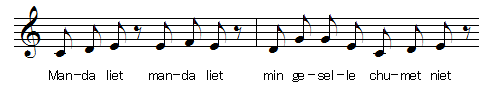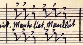 歌の復元とネウマ ^: シュメラーの巻末付録では、accentibus sive notis musicis ornata(アクセントもしくは音符の装飾)を持っているものとして47の詩を列挙しています。カルミナ・ブラーナに付与されているネウマは、グレゴリオ聖歌などでよく見かける四角ネウマではなく、音の合図(身振り)を書きとめた図形によるもの(古ネウマ)で、音が高いヴィルガ(