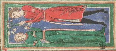 関連写本 ^: 批判校訂版では比較参照した写本として、英国博物館Arundel 384(略号A)、ケンブリッジ大コーパス・クリスティ・カレッジMS 450(同C)、フランス国立図書館Fonds latin 11867(同P)、ケンブリッジ大図書館MS Ff.1.17.1(同Ca)、同ボドリアン図書館Digby 166(同D)、Digby 53(同Di)など18の資料が挙げられています。