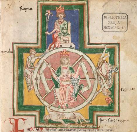 人間は気紛れな運命に翻弄され逆らえないことを示すわけですが、これらの詩のテキストからは盛者必衰という考えが強く感じられ、抑圧され搾取されていた中世の民が、支配者の没落を運命に託すということでもあったでしょう。酒を飲みながら権力を揶揄し、お前たちいずれは運命によって振り落とされるんだぞ、という感じです。S.175に出てくる現実と逆転した楽園Cucaniensis(コケイン)とも通じるものがあるかもしれません。